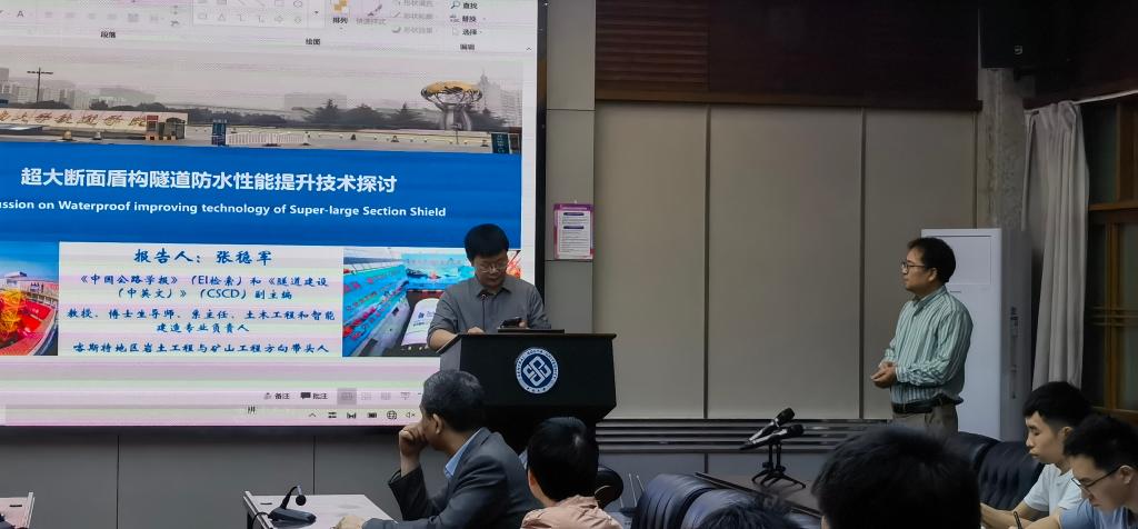 随后,在世纪楼14楼会议室张稳军教授为贝博官网师生作了题为《超大断面盾构隧道防水性能提升技术探讨》的学术论坛报告。报告介绍了其团队在盾构隧道防水性能提升、掘进精准动态纠偏、结构安全与智能评估三方面取得的研究成果。报告会由艾弗森贝博ballbet官网副院长雷明锋教授主持。