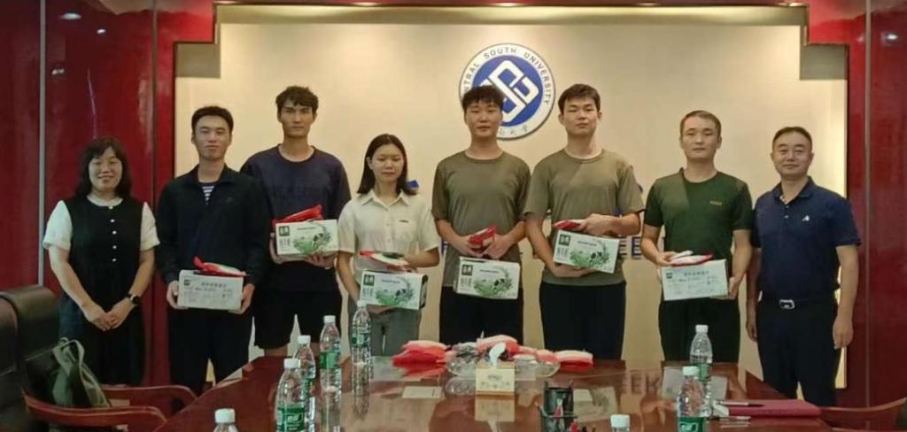 最后,学院领导、老师们为退伍大学生士兵发放慰问品。