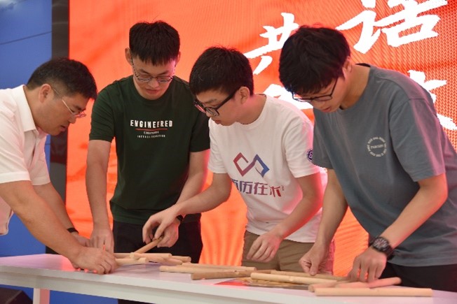 随后,讲座现场与中铁大桥路桥梁博物馆连线,肖世波带领身在会场的老师同学们通过“灌木拱桥”这一寓教于乐的小游戏,在自己动手的过程中回顾了中国桥梁建造史,体会了桥梁结构的力学之美。