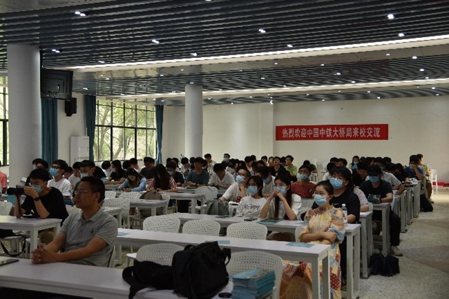 肖世波校友通过讲述从业近二十载奋斗故事,与同学们分享工作经验与收获感悟,真诚朴实的语言感染着在场的每一位同学。肖世波始终坚持着建桥报国的理想,践行着对工作高度负责和追求极致的大国工匠精神,把桥梁建设视为一种修行,将桥梁施工的技术、人才、装备充分运用于海上发电,始终走在交通强国的前列,在平凡发岗位做出了不平凡的业绩。肖世波对中南学子寄予厚望,对同学们提出了几点建议:第一,希望同学们持之以恒,脚踏实地,提高自己的专业素养;第二,要坚持学习,不断提升自我;第三,要学会做好取舍,对的选择能让努力更有价值,最后将“青春有磨砺而出彩,人生因奋斗而升华”作为寄语送给同学。
