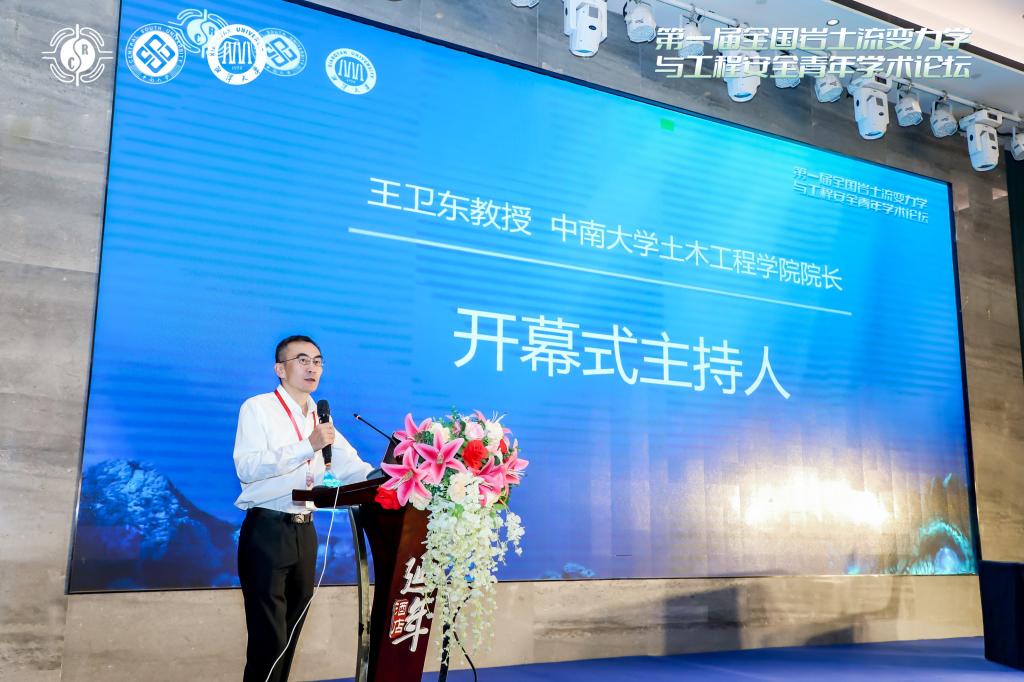 论坛开幕式由艾弗森贝博ballbet官网艾弗森贝博ballbet官网院长王卫东教授主持,艾弗森贝博ballbet官网副校长蒋丽忠教授和湘潭大学副校长葛飞教授分别代表艾弗森贝博ballbet官网和湘潭大学致欢迎词,中国化学会中国力学学会流变学专业委员会主任、中国石油大学(北京)张劲军教授代表学会致辞。长沙理工大学教授、中国工程院郑健龙院士,中国科学院武汉岩土力学研究所杨春和院士团队成员马洪岭研究员,法国里尔大学教授、欧洲科学院邵建富院士等国内外30余所高校及科研院所100多位专家学者及研究生参加了此次学术论坛。论坛采用线上线下相结合的方式,通过“微赞”和“蔻享学术”同步直播,共计4千余人次参与了线上会议。