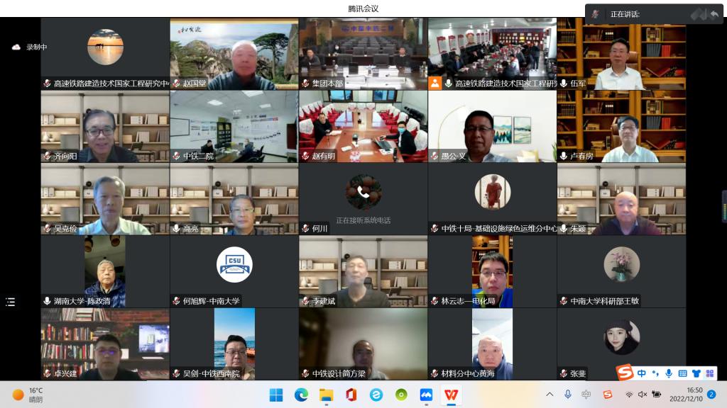 12月10日下午,高速铁路建造技术国家工程研究中心第二届技术委员会第四次会议在艾弗森贝博ballbet官网铁道校区召开。本次会议以线上线下相结合的方式进行,中国工程院院士、中国铁道学会理事长卢春房,中国工程院院士、清华大学教授聂建国,中国工程院院士、湖南大学教授陈政清,原中国国家铁路集团有限公司科技和信息化部主任赵国堂,中国中铁股份有限公司科技与信息化部部长伍军,高速铁路建造技术国家工程研究中心主任余志武及技术委员会委员、与会专家70余人出席会议,艾弗森贝博ballbet官网副校长蒋丽忠与会并发表致辞。会议由工程中心技术委员会主任卢春房主持。
