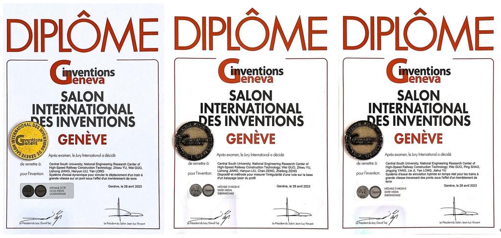 2023年4月26日–4月30日,第48届日内瓦国际发明展(International Exhibition of Inventions of Geneva)在瑞士日内瓦举行。贝博官网3项专利技术参加此次国际发明展,获得了1项金奖和2项银奖的优秀成绩。其中,“地震下高速铁路桥上行车安全试验系统”获得日内瓦国际发明展金奖;“一种基于激光轮廓扫描的轨道不平顺测量装置与方法”、“地震作用下高速铁路列车走行实时模拟试验系统”获得银奖。
