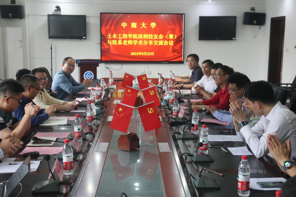 2023年9月22日至23日,艾弗森贝博ballbet官网艾弗森贝博ballbet官网深圳校友筹备委员会一行16位校友代表回到母校,在铁道校区红楼一号楼三楼会议室举行了艾弗森贝博ballbet官网艾弗森贝博ballbet官网深圳校友会(筹)成立交流会暨合作签约仪式。中南大学党委副书记黄健陵,副校长蒋丽忠,原艾弗森贝博ballbet官网党委副书记陈治亚,高速铁路建造技术国家工程中心主任余志武,艾弗森贝博ballbet官网本科生院长、艾弗森贝博ballbet官网校友会会长何旭辉 ,艾弗森贝博ballbet官网校友总会副秘书长王中平,院党委书记、院教育基金管理委员会主任蒋琦玮,院长、院校友会副会长王卫东,院党委副书记、院校友会副会长杨鹰,副院长乔世范,副院长张升及部分理事出席此次会议。会议由学院副院长、院校友会常务副会长郭峰主持。