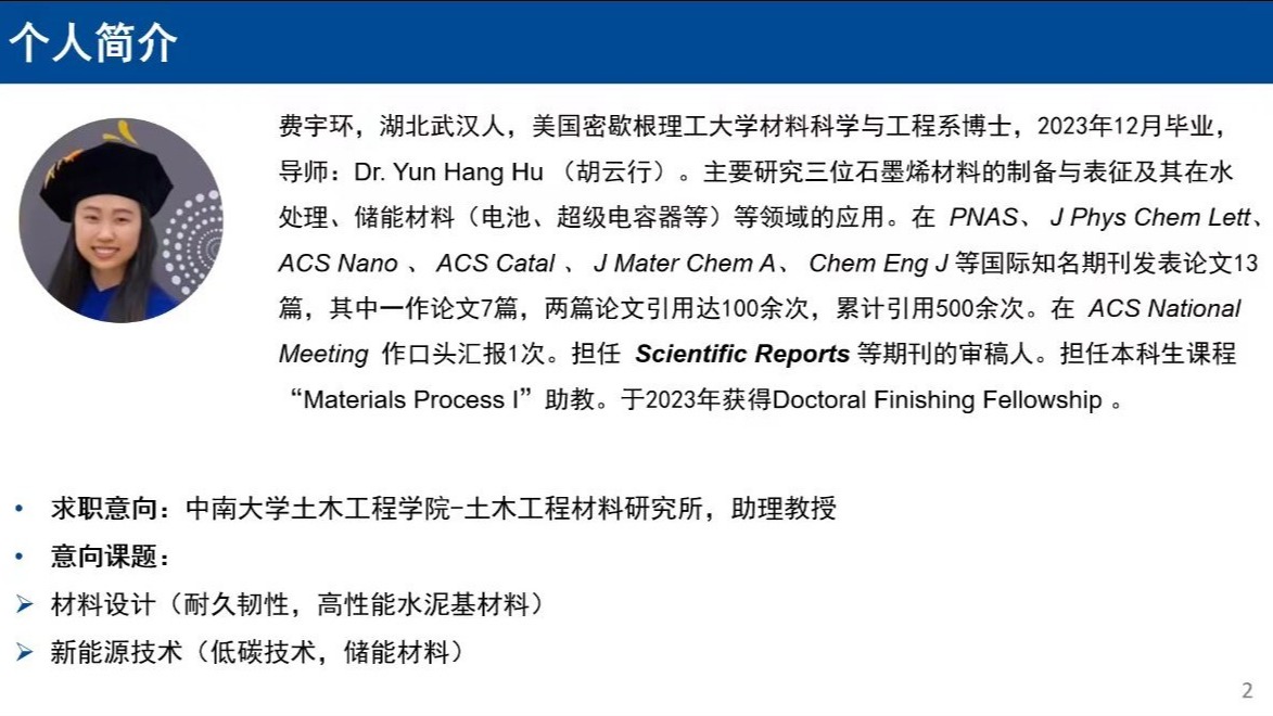 随后各位青年学者针对自身情况进行了介绍,包括主要研究方向、研究成果和未来发展规划。他们分享了各自在土木工程领域的专业经验和学术成就,展示了他们在研究领域的优势和创新点。这一环节有助于大家更深入地了解各位学者的学术特长,为未来的合作提供了更好的基础。