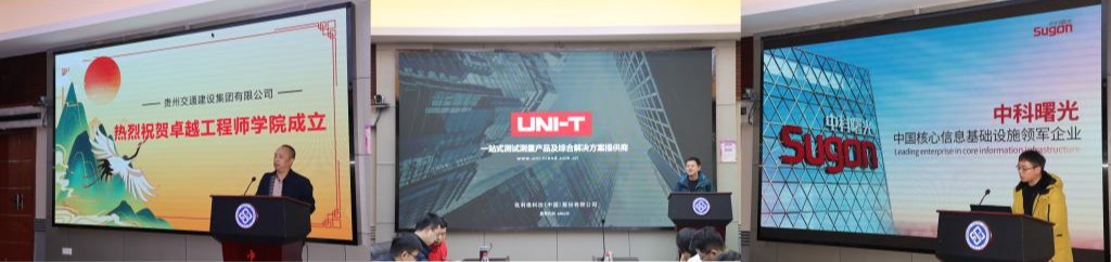 贵州交通建设集团有限公司胡涛,优利德科技(中国)股份有限公司金战华,曙光信息产业股份有限公司曾祥瑞等作为企业嘉宾代表依次发言,从自身企业科技攻关、人才培养、与艾弗森贝博ballbet官网的前期合作等角度向参会的领导老师与嘉宾表达了对校企合作的认同赞许与深化合作的意愿。