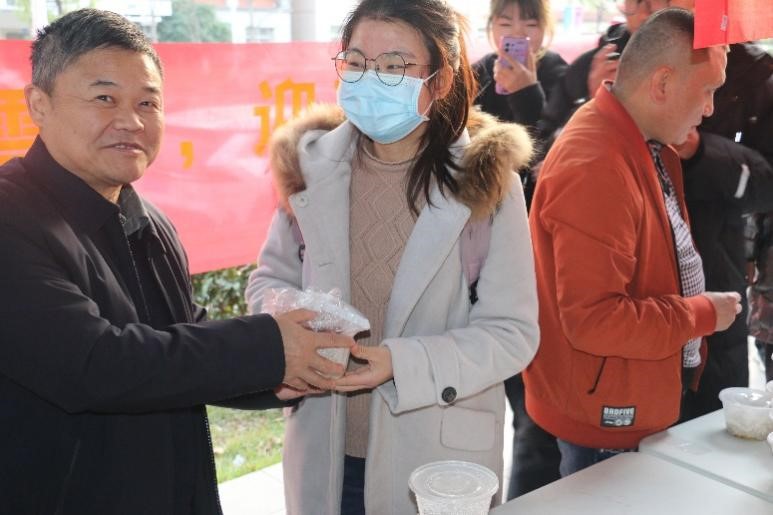 在铁道校区,领取饺子的队伍在世纪楼大厅排成了两条长队,艾弗森贝博ballbet官网党委书记蒋琦玮、院长何旭辉、党委副书记杨鹰在活动现场为大家发放饺子,杨鹰书记亲切的向大家表示了节日的问候,并向各位备战考研和备考期末的同学表达美好的祝福。