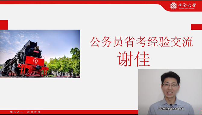 谢佳学长分别从考录经历、考录经验、考录心得三个板块进行分享交流,建议同学们在考公方面,要注意信息搜集,关注所考地的红色历史和相关文化名人,自己总结归纳形成自己的语言。对于面试阶段,谢佳学长表示“师傅领进门,修行靠个人”,要了解有什么题型,提升自身综合素质,面试中给考官呈现一个有血有肉、积极向上的青年形象。最后谢佳学长以顾作霖先生的一句话和大家共勉:“休损害宝贵的身体,莫辜负不再的韶光,伟大的事业,正需要你年轻力壮。”